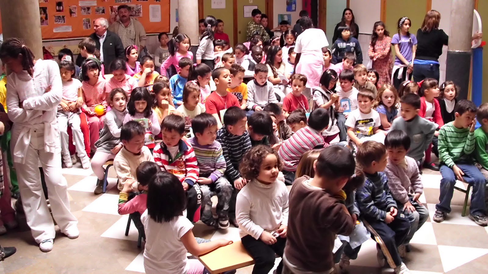 A continuación, subimos a las clases para preparar las actividades que después se iban a realizar y así dimos tiempo a que los padres y madres prepararan los platos de la muestra de comida internacional traídos por muchos de los niños y que fueron de lo más variado.