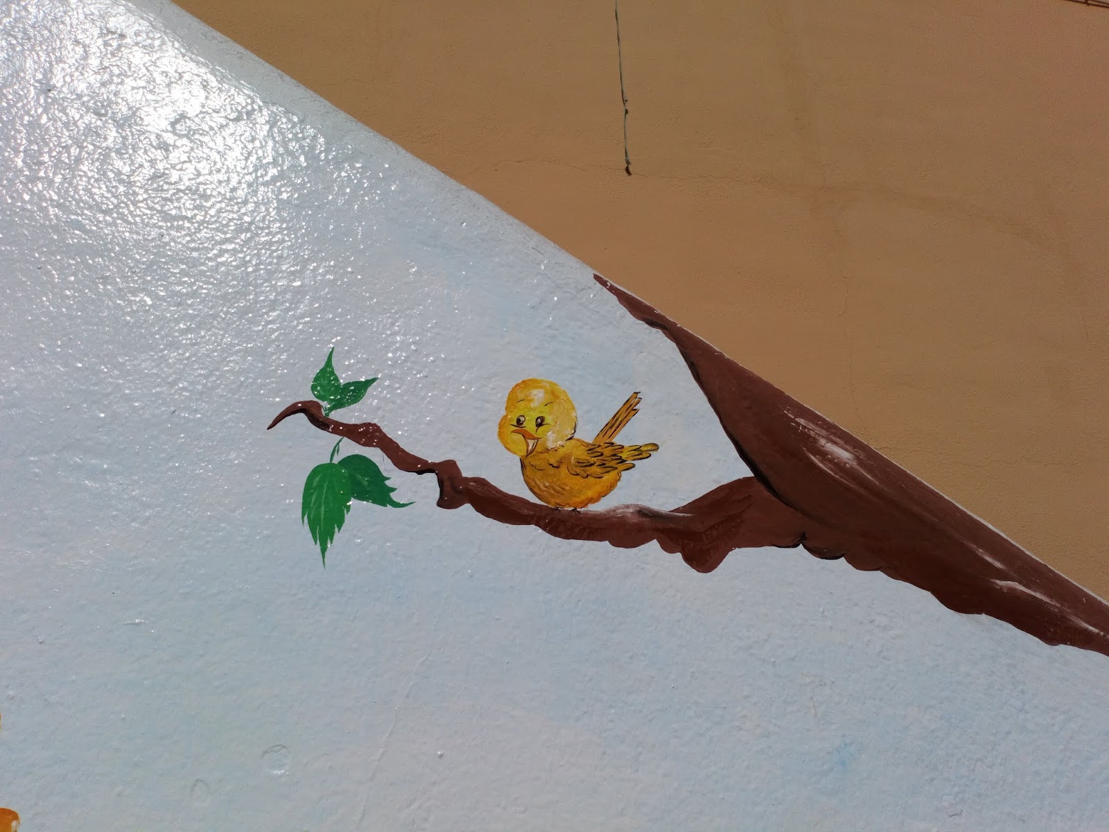 Día tras día la blanca pared nos iba descubriendo algún motivo nuevo: Un pajarito, unas florecillas, nubes...¡QUÉ BONITO!
